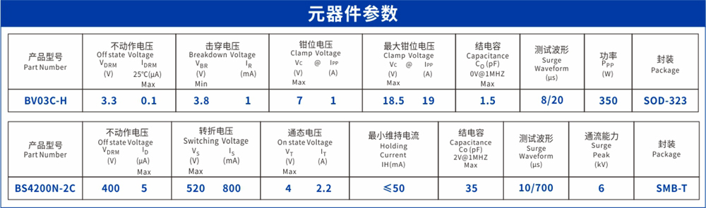 正如上述千兆网口防护解决方案,第一级防护,槟城电子推荐使用二合一封装的BS4200N-2C,该器件既能保证残压较低的同时又可以承受较高的工频耐压,满足ITU-T K.21 IEC6100-4-5等标准测试要求,并支持对地AC230V电力线搭接。通过使用BS4200N-2C进行共模防护,将浪涌电流引流至大地,防止大浪涌能量传递到后级设备,从而确保前级防护的安全性。测试量级可满足共模(CM)6kV 42Ω@1.2/50-8/20μs和6kV 40Ω@10/700-5/320μs;差模(DM)2.5kV 10Ω@1.2/50-8/20μs和1.5kV 40Ω@10/700-5/320μs。此外,BS4200N-2C的二合一封装能够有效减小占板面积,节省PCB空间。