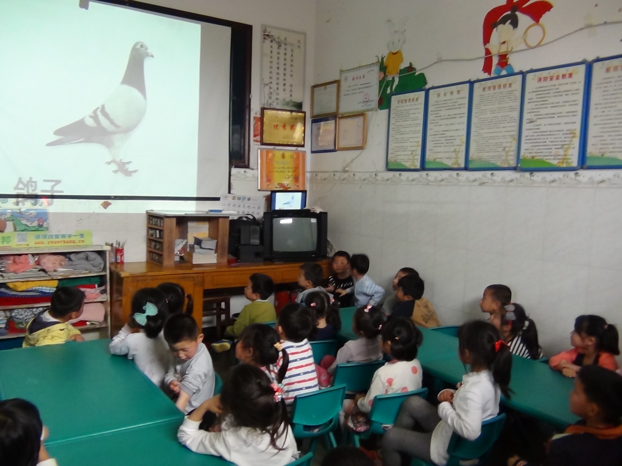 ▲有了笔记本电脑和投影仪,小朋友们的课堂知识更加丰富多彩